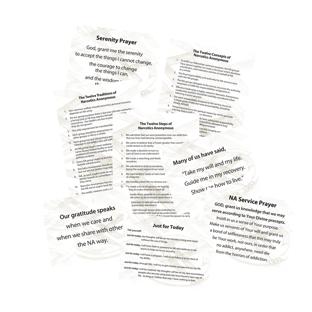 A complete set of Paper eight posters (3 large & 5 small) for use in NA meetings, events, etc.